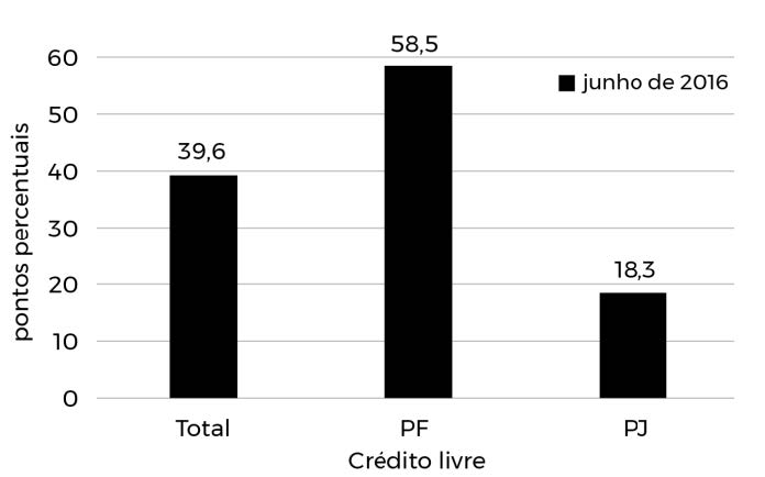 Gráfico 2 – Spread bancário, recursos livres, por tipo de tomador (06/2016)