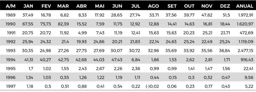 Tabela 1 – Inflação entre 1989 e 1997