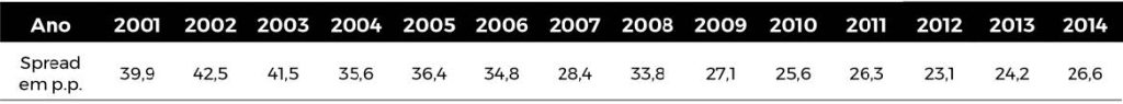 Tabela 3 – Spread bancário no Brasil. Série BACEN 2001-2014